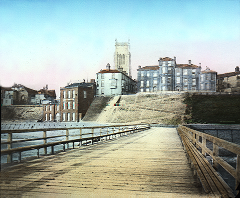 As you'll have seen from the introductory pages and the catalogue, this collection was built up in the town of Cromer, Norfolk (that's Norfolk in England). At the heart of the collection is a set of slides of local scenes, mainly of the town itself, but also of other scenes in the vicinity. These slides seem to have first been used before 1891 - there are 53 in the catalogue of that date - and new pictures were added by Mr Salter until he gave his last show in 1919.