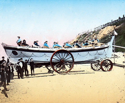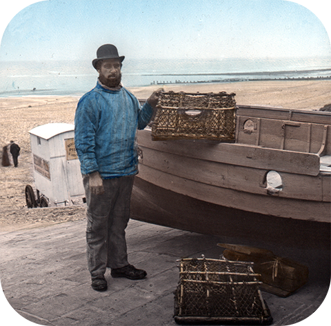 As you'll have seen from the introductory pages and the catalogue, this collection was built up in the town of Cromer, Norfolk (that's Norfolk in England). At the heart of the collection is a set of slides of local scenes, mainly of the town itself, but also of other scenes in the vicinity. These slides seem to have first been used before 1891 - there are 53 in the catalogue of that date - and new pictures were added by Mr Salter until he gave his last show in 1919.